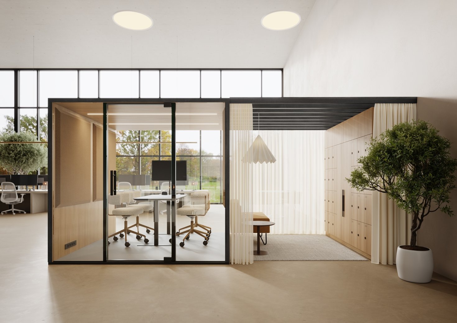 Experience how biophilic design comes to life – through Taiga’s modular workspace concept and Naava’s green solutions.